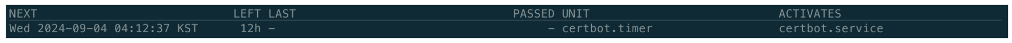 아래 명령어를 입력해보면 certbot에 적용된 timer를 확인할 수 있다.